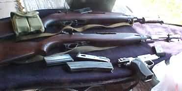 Lee Enfield rifle, and a U.S. .30 caliber M1 Carbine. WHen not being used,